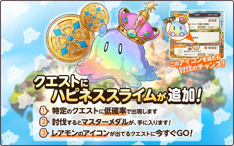 一部のクエストに低確率で「ハピネススライム」が出現します!